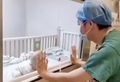 武漢でコロナウイルス陽性の赤ちゃんに父親が涙