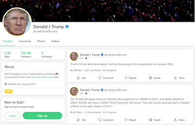 Gabがトランプ大統領のTwitterを完全復元