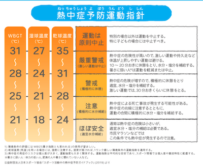 環境省の定める「熱中症予防運動指針」では、暑さ指数を参考に運動をすることを推奨しています。28度から警戒が必要で、家庭でも確認し子供とよく話し合うことが望ましいでしょう。