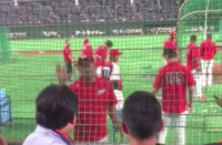 男性客は「あ、そうなの? ほーん、そりゃ大変だ」と小ばかにしたような態度を取ると、長野選手は「大変、大変」こうした大人の対応を見せた。他のファンから「長野、頑張れ!」と声援が飛ぶ中で、打撃練習に戻った。
