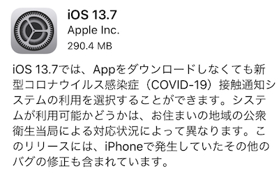 iPhoneをiOS13.7にアップデートするとCOCOAのアプリを入れなくてもいいという方と入れないと使えないという方がいらっしゃったので実際にアップデートしてみました。