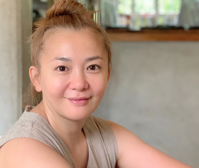 長い髪を頭上できゅっとお団子に結え、カーキ色のタンクトップで微笑む近影も公開しました。