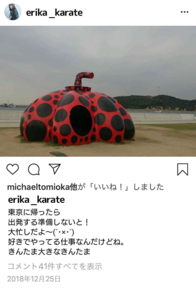 インスタグラムには投稿者名にある「erika_karate」のユーザーネームは実在しましたが、関連性が伺えません。