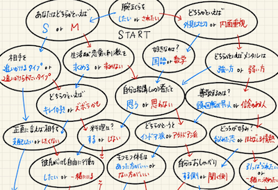 YesーNo形式で答えると「相性の良い彼氏がわかる」という優れもののチャート票がtwitterで話題となっています。