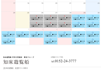 航行時間3時間の「知床岬コース」は、1日に1便、10時出発となっていた 出典:知床遊覧船公式HP