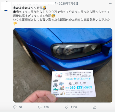 Twitterに投稿されているものの大半は「警察に通報した」「罵声を浴びせ断った」と言う結末を迎えているものの、実際に交渉に応じ、廃車にする予定だった車を言い値で売ったと言う事例もあります。