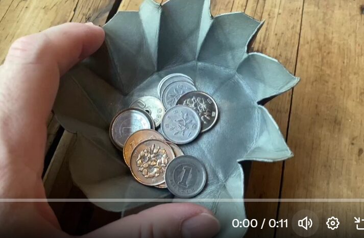 花紋折りは内山光弘氏が考案した折り紙。柳宗理氏は初めて見た花紋折りに称賛されたとか(柳宗理 監修・編集)日本の伝統的形態の姿とモダンで新鮮な美を見出したそうです。「花紋折り」を革と折りだけでコインを包む形状に。 (HOW TO WRAP_山本考志さん監修)https://t.co/oG5EaOu9s8 pic.twitter.com/yNbCRRk1iu