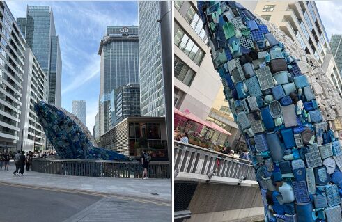 イギリス・ロンドンの金融街「カナリー・ワーフ」に突然現れた、海洋ゴミで作られた巨大なクジラのオブジェがSNSで「日本へのヘイト作品なのかもしれない」と話題となっています。