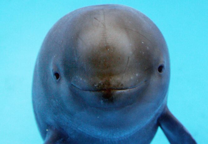 スナメリはイルカの仲間ですが、くちばしも背びれもなく、ジャンプもしません。なかなかお目にかかれない“控えめ系”の海洋生物です。体長は約1.5〜1.7メートル、重さは50〜60キロ。IUCN(国際自然保護連合)によって絶滅危惧種にも指定されています。