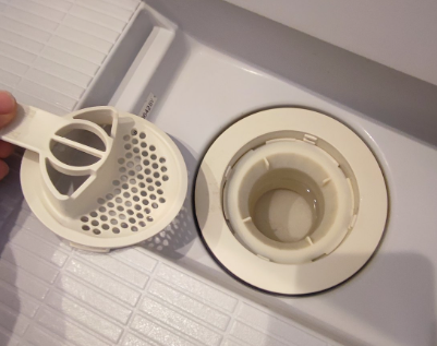 写真をみると、清掃前だというのに水回りや排水溝のヘアキャッチャー、ふろ場の排水溝のすべてのパーツ、これらが新築かと思うほどのきれいさに保たれていました。