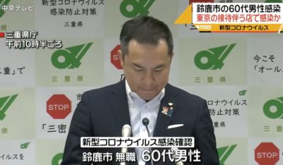 感染経路は「遊興目的で」で向かった東京の「接待を伴う店」だと言い、三重県の鈴木英敬知事は「東京都心部への移動は必要性などを一度考えなおして欲しい」と呼びかけ。